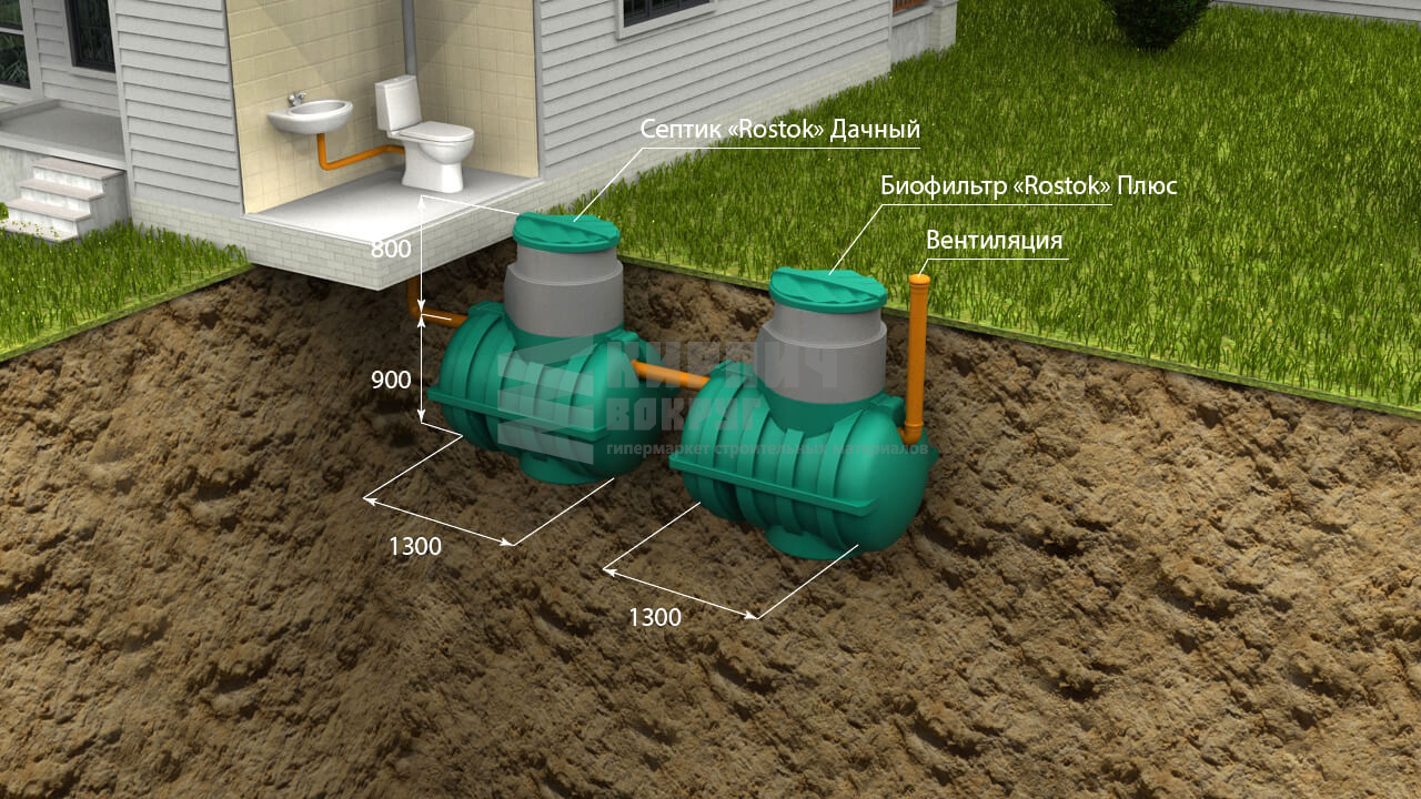 Септик Rostok Загородный обладает небольшими габаритами и простой конструкцией, что облегчает монтаж и позволяет устанавливать септик без применения спецтехники.