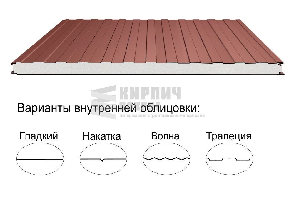 В интернет-магазине "Кирпич Вокруг" Вы можете купить Стеновая трёхслойная сэндвич-панель трапеция 50мм 1190мм с видимым креплением пенополиизоцианурат Полиэстер Металл Профиль в Белгороде, а наши специалисты готовы вам помочь с выбором по адресу: , или оказать консультацию по телефону: .
